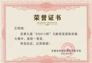 由安徽省高校图书情报工作委员会、安徽省高等学校数字图书馆举办的“青衿问道 星海寻踪”第九届“EBSCO杯”文献信息获取体验大赛答题活动近日已圆满结束。
